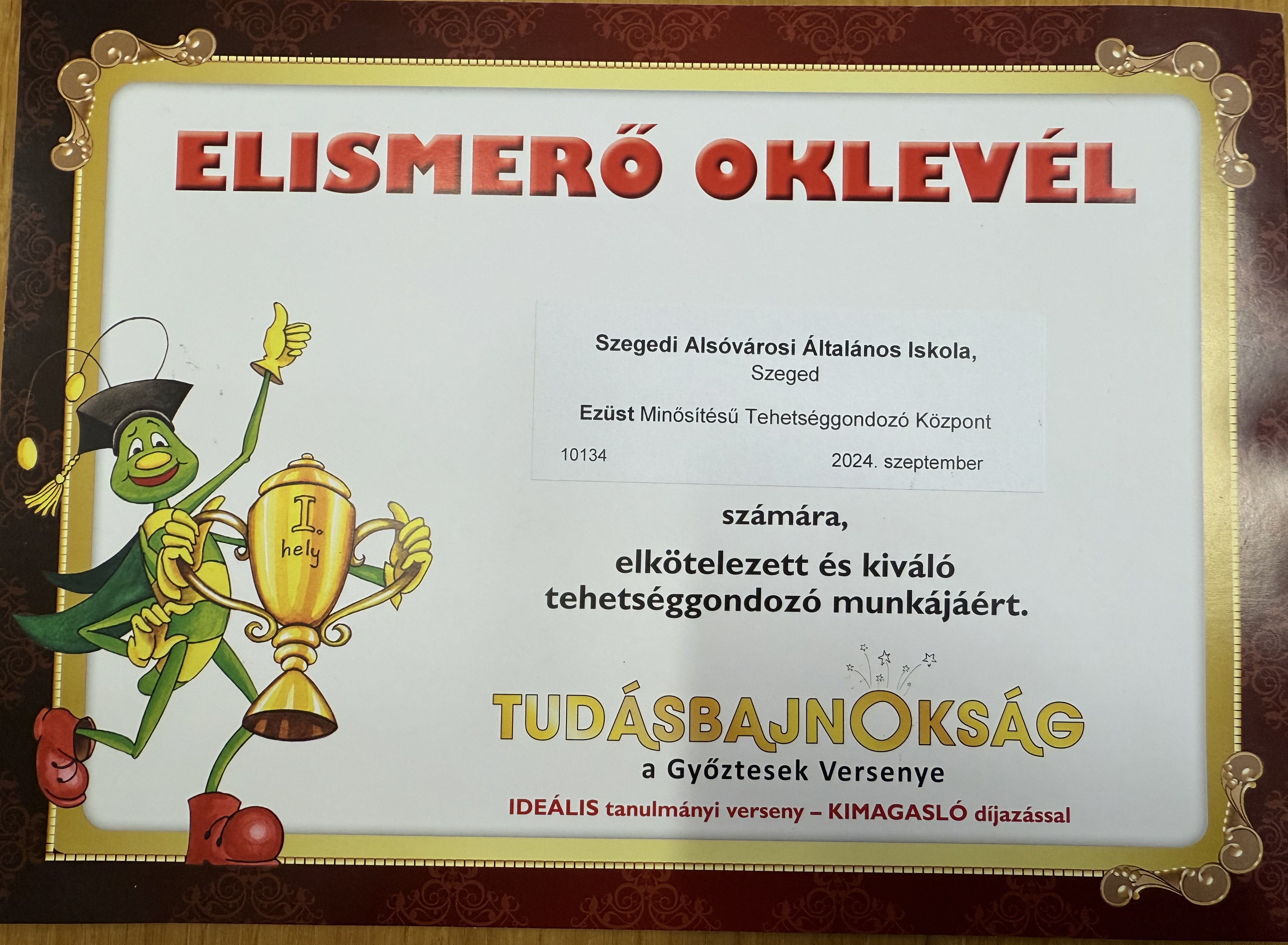 Gratulálunk Duics Villőnek, aki az Országos Honismereti Tanulmányi Verseny országos döntőjében 1. helyezést ért el, és Tot Dánielnek, aki a 6. b osztályból az 5. helyezést szerezte! A vármegyei döntőben Villő 1., Dániel pedig 5. helyezést ért el. Külön köszönet Zelenainé Valaczkai Gyöngyi tanárnőnek, aki mentorálta munkájukat.